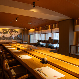 ビルの6階にひっそりと佇む隠れ家。秋田杉を使用したカウンターや、陶芸の職人が当店専用に焼き上げた器など、こだわりの詰まった空間作りが随所に感じられます。落ち着いた雰囲気の店内には、2名様からご利用可能な個室も完備しており、プライベート空間でごゆっくりとお寛ぎいただけます。おひとり様でもお気軽に。洗練された高級感溢れる静かな空間は、ご接待やデート、ご宴会、記念日といった特別な日にも最適です。