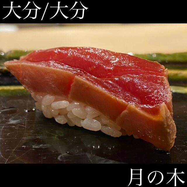 JR各線大分駅より徒歩10分。ガレリア竹町商店街にあるデザインビルの1階に、『月の木』はあります。入ってまず、印象的なフラットなカウンター。「大分県食材で、どこまで江戸前寿司の世界に迫れるか」という探究心がちらり、と見える、当店はコースのみの提供となっています。お造りと、お寿司が中心のコースの中で、味わっていただきたいツマミは「タラコのわさび漬け」。塩タラコをわさびに漬けて、軽く炙った一品。県産の