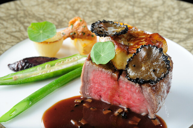 JR岡山駅直結、ホテル最上階のフランス料理店。食材そのままの味、風味を大切にし、調理技法や組み合わせを工夫しております。デートや誕生日、顔合わせや結婚記念日の家族行事など特別な日にもご利用ください。お昼のコースは7,500円~。まずはお気軽にお越しくださいませ。