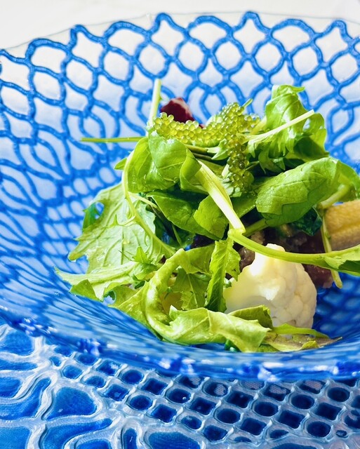 ホテル雅叙園東京内の「RISTORANTE CANOVIANO」を立ち上げた植竹シェフ監修の自然派イタリアン。沖縄の言葉で「ぬちぐすい=命の薬」という意味の「ぬちぐすい」なコースを提供しています。ニンニク、唐辛子は一切使わず、素材の持ち味を活かした料理は、沖縄の食材をふんだんに使用した逸品揃い。サンセットスポットである読谷村の美しい夕陽を眺めながら、心ほどけるひと時をお過ごしください。