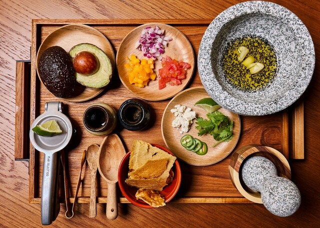 イタリアンをベースにメキシコ、ポルトガル、スペインの要素を取り入れた新ジャンル“ラテンイタリアン”をご提供。ワカモレは、お客様の目の前で臨場感たっぷりに調理。アボカドとフルーツを石のうすでペーストにしたソース、トルティーヤチップスとともにどうぞ。こだわりの素材を使用し、ナポリの窯で焼き上げるピザを3種類ご用意するほか、石垣島の新しいブランド牛である新里牛ステーキもございます。