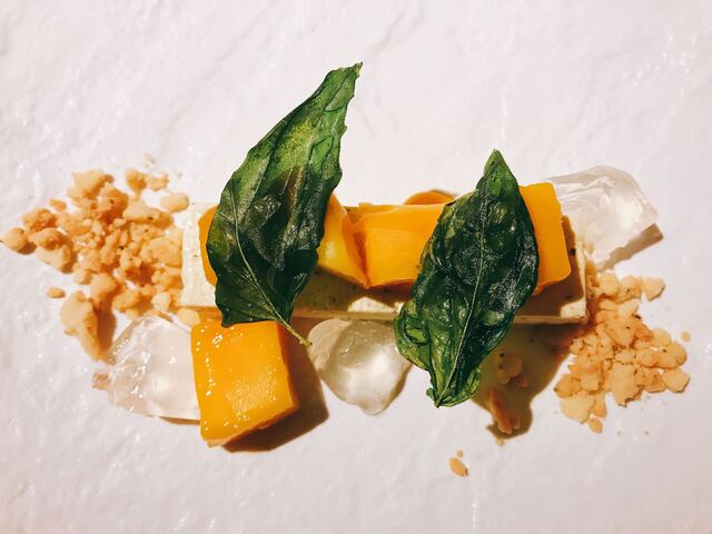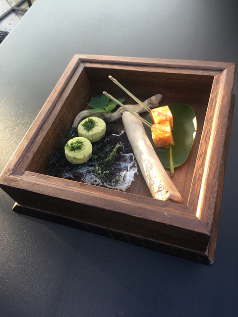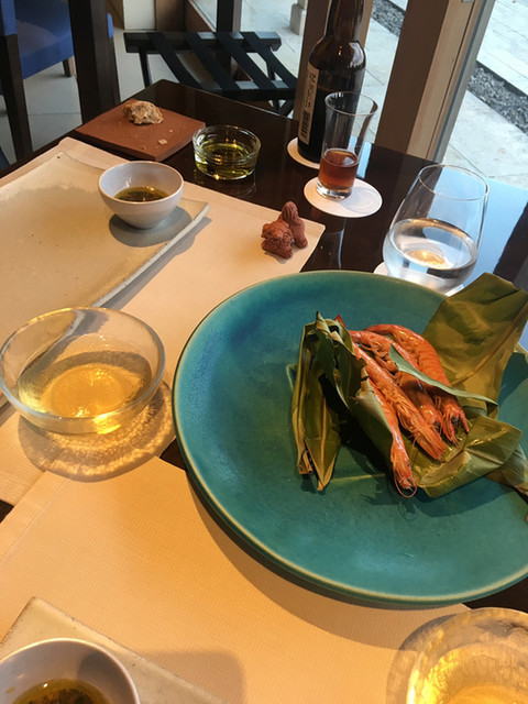 沖縄の素材をフレンチの技法でコースに仕立てました。沖縄の器とともにご賞味ください。