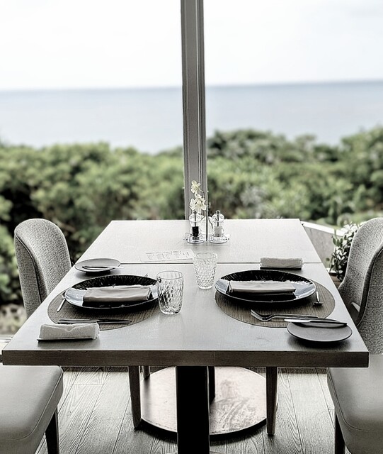 足を踏み入れた瞬間に広がる、息を呑むほどの絶景。三面開口の窓から美しい海が一望できます。美しく緩やかな島の時間を贅沢に楽しむひととき。リゾートの開放感と落ち着いた雰囲気に包まれたレストランです。