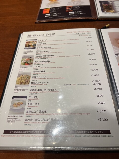 ※17時以降はご飲食代の10%をサービス料として頂戴しております。