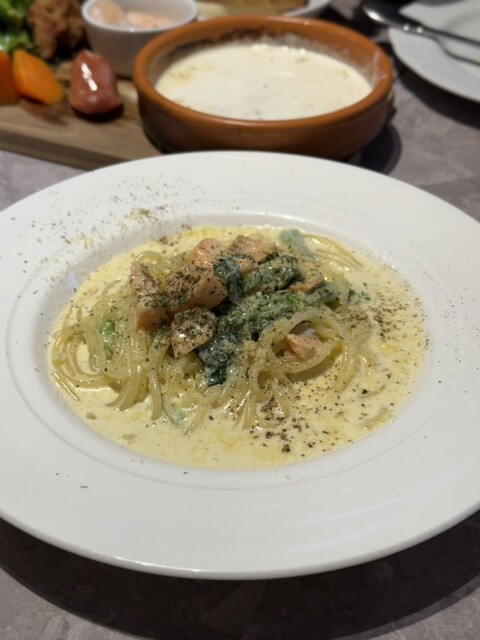 淡路製麺から毎日入荷するこだわりの麺。もちもちとした食感、生パスタならではの味わいです。パスタに合わせて旬の食材を使ったソースでお楽しみいただけます。食べ放題でも生パスタでご提供!