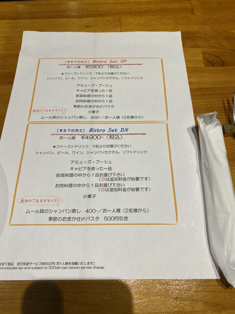 【ディナータイム】コースでのご予約以外のお客様は 別途10%のサービス料を頂戴いたします。