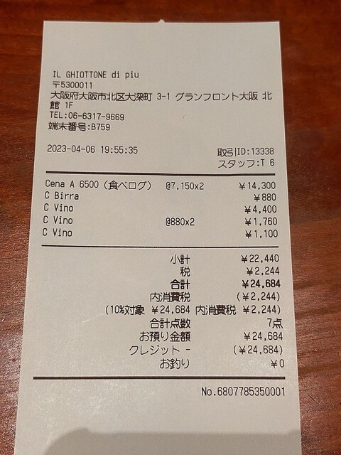 カード可(VISA、Master、JCB、AMEX、Diners)