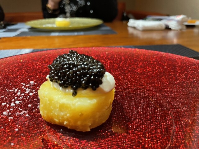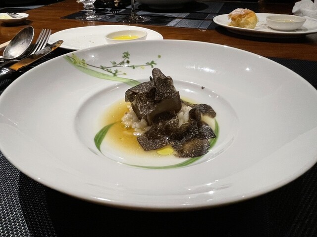 目でも舌でも楽しんでほしいという思いから、カウンター席ではお客様の目の前で料理を盛り付けるなど、ライブ感を味わえます。たとえば、肉料理をお皿に盛り付けているところや、トリュフを贅沢に削ってパスタの上に盛り付けるシーンをご覧いただけることも。また、シェフとの会話も魅力のひとつです。まるで我が家にいるような感覚の中、贅を尽くしたディナーをお召し上がりください。大切なお客様や、ご友人とのひと時にどうぞ。