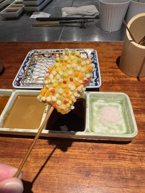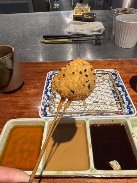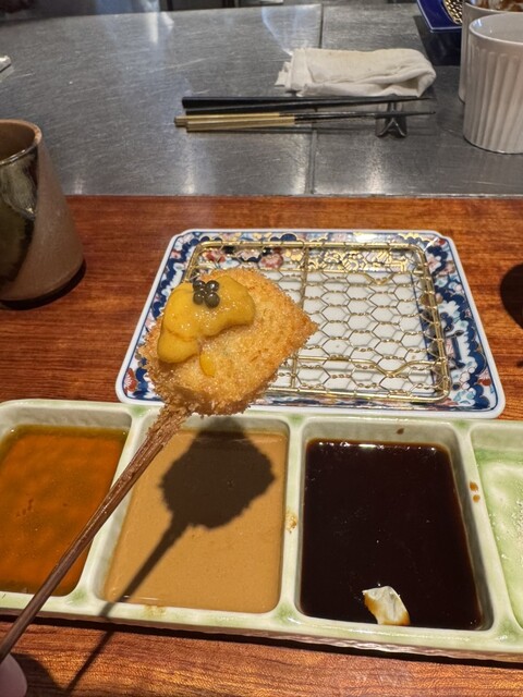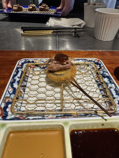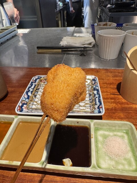 北新地や銀座、パリにも店を構える名店の味をリーズナブルに。“数より質を重視”それがモットー。上質なお肉や新鮮な魚介を中心に、優れた目利きと長年の勘で厳選した高品質な食材を仕入れております。そんな食材から生み出されるハイクオリティな“串揚げ”は、紛れもなく『旨い』と自信を持ってご提供。極上黒毛和牛ヘレ肉やフォアグラなど、贅を極めた食材たちによる“記憶に残る”串揚げとの出会いを愉しんで。