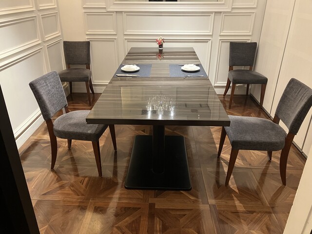 洗練されたモダンな空間で、記念日や接待に最適な、開放感ある上質なテーブル席です。