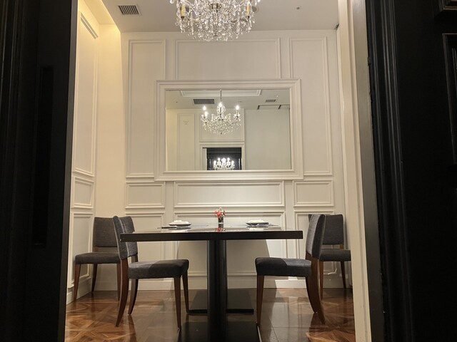 NYスタイルのモダンな個室空間。シャンデリアの下で、最高級のステーキを堪能。