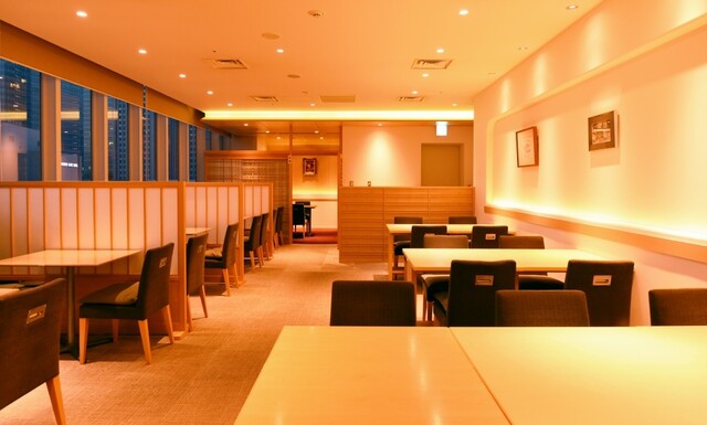 【ホール席】 広々とした落ち着いた店内で、季節のお料理をお楽しみ頂けます。