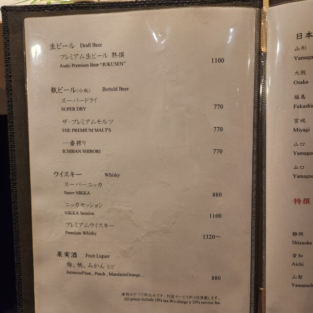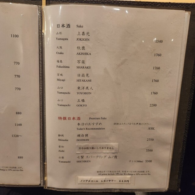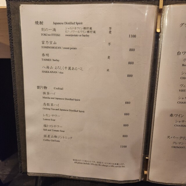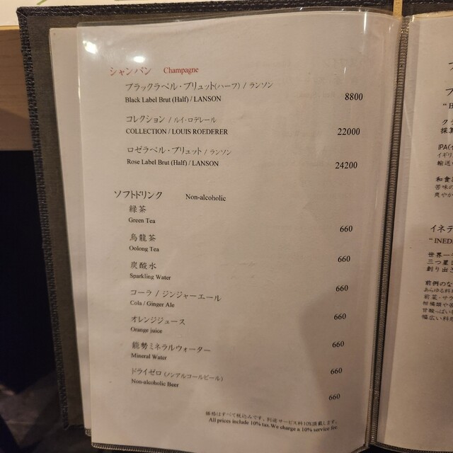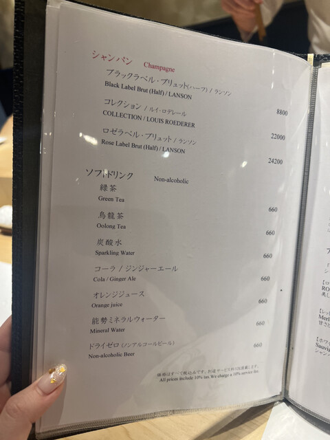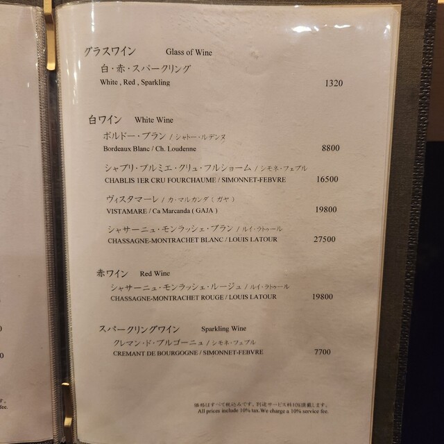 サービス料10%を頂戴しております。 (ランチ利用時はコースご注文のお客様のみサービス料10%を頂戴しております)