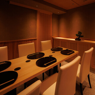 広い空間を確保した個室は6名様用、8名様用と2室完備。利用は2名様からでお忍びやビジネスシーンにも対応可能。