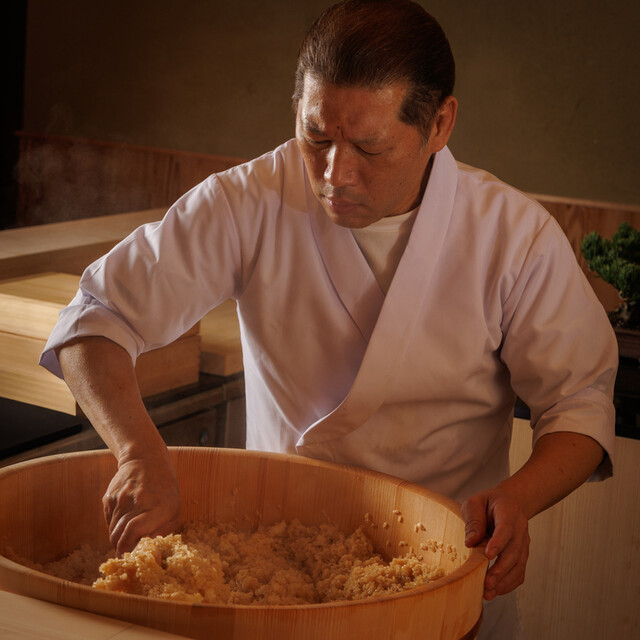 価格高騰が止まらない中、うまい鮨を腹いっぱいに食べたいという皆様の要望を叶えます。旬食材のコースで軸となる海鮮は、豊洲からから仕入れたてに近い状態で直送される。そのフレッシュな香りと味わいを、様々な調理法で楽しませてくれる。こうした一流の生産者たちとの見事な連携により、食材が最も輝く形で新鮮な寿司を提供します。