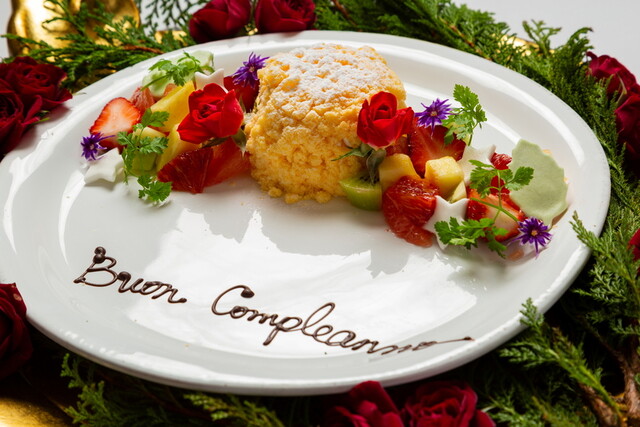 【ディナーC】記念日コース ミモザケーキにメッセージをそえて全9品(消費税・サービス料込み)