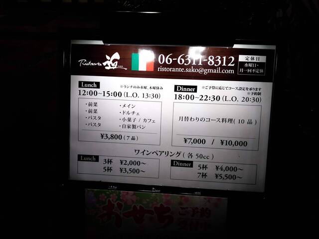 カード可(VISA、Master、JCB、AMEX、Diners)
