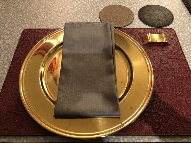 シャネルとエルメスの本革ソファや、エトロとエルメスのリバーシブルマット、金のカトラリーなど、細部にまでこだわったラグジュアリーな空間で日常を忘れるひとときを。