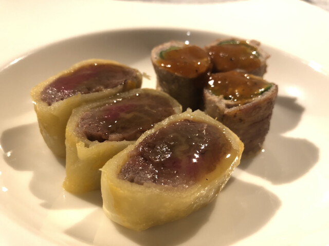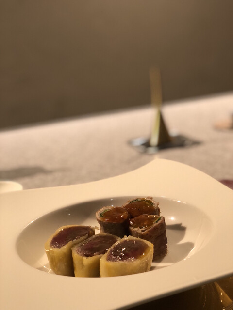 旬の野菜や魚介、ジビエ、和牛、三大珍味など、季節ごとに各地から厳選した高級食材を使った月替わりの創作コースをご提供。
