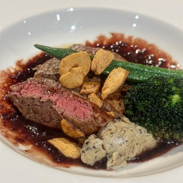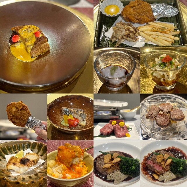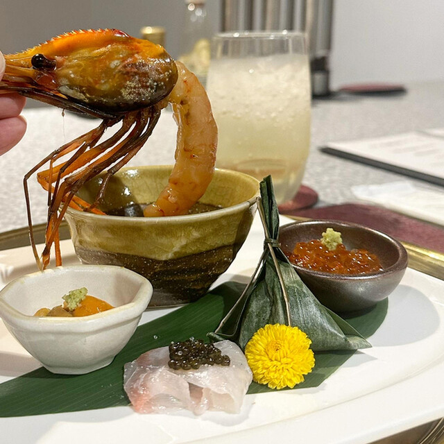 旬の野菜や魚介、ジビエ、和牛、三大珍味など、季節ごとに各地から厳選した高級食材を使った月替わりの創作コースをご提供。