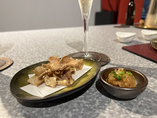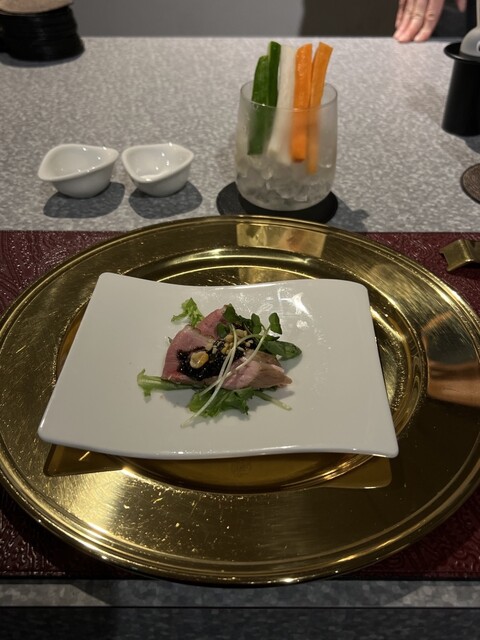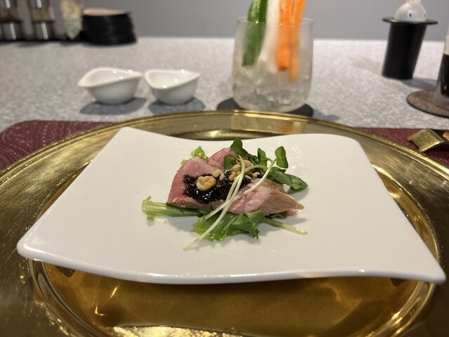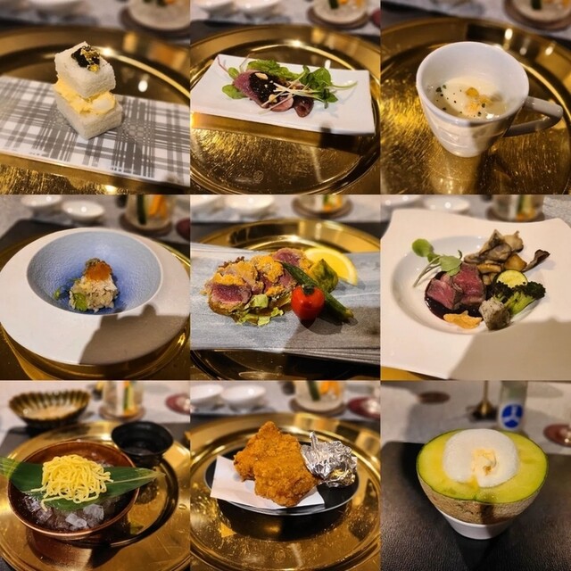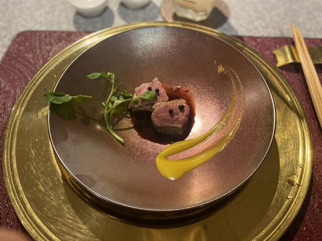 【お料理】旬の野菜や魚介、ジビエ、和牛、三大珍味など、季節ごとに厳選した高級食材を使った月替わりの創作コースをご提供。