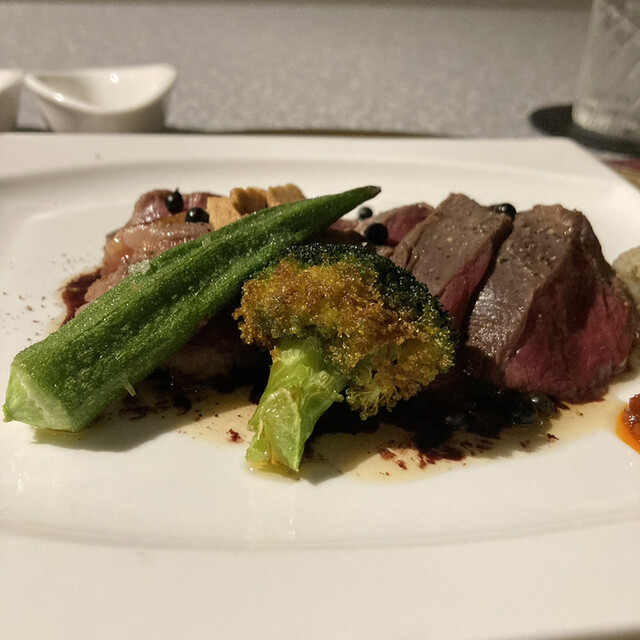 旬の野菜や魚介、ジビエ、和牛、三大珍味など、季節ごとに各地から厳選した高級食材を使った月替わりの創作コースをご提供。