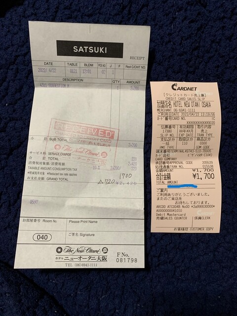 カード可(VISA、Master、JCB、AMEX、Diners)