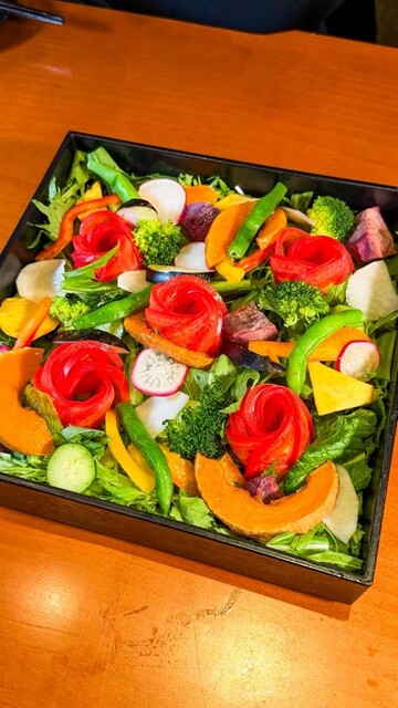 「最高級クラスの近江牛×自家栽培の近江野菜」を主役に、職人が吟味を重ねた旬の食材を、和・イタリアン・フレンチなど素材を活かした調理法で料理する「肉」割烹コース。一頭買い精肉卸直営の「花殿ka-den」だから出来る、リーズナブルな価格で提供させて頂きます。「花殿ka-den」では、記念日に無料で自家製ケーキに花火を付けて「サプライズ演出」も可能。お客様の想い出に残る特別な時間を演出致します。