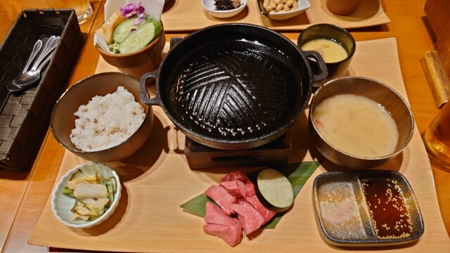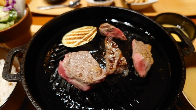 【近江野菜サラダ&自家栽培の近江米(純米100%)食べ放題】大人気の「近江牛焼肉御膳」や「牛カツ御膳」をはじめ、新メニュー「近江牛の煮込みハンバーグ御膳」「近江牛のハヤシライス御膳」「近江牛のタタキ御膳」「近江牛スジ煮込みスパイスカレー御膳」「近江牛のビフテキ御膳」などなど、バラエティーに富んだメニューになっております。