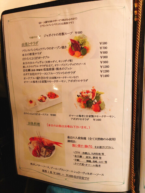 お一人様500円(ディナー) 、個室サービス料10%(ディナー)