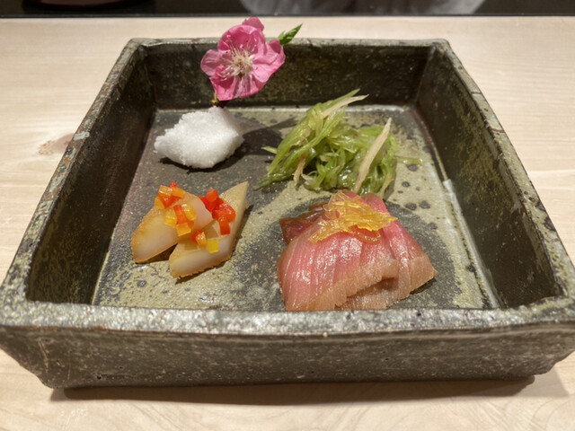 ●通常コース(13,200円)「前菜、お造り、一品物、握り、留椀」