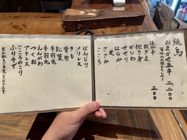 希少な「熊野地鶏」の雌を使用した、こだわりの炭火焼鳥をご提供しております。当店の「熊野地鶏」は特別に飼育期間を2週間延長して貰ってます。出荷数は1日限定100羽と少なく幻の鶏と呼ばれています。お食事はコース人数分は必ずご注文いただいておりますが追加で鳥刺し・一品・追加串・締めメニューたくさんご用意しております。店内は落ち着いた空間で、カウンター席とテーブル席を完備。ご来店お待ちしております。