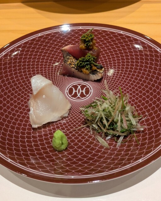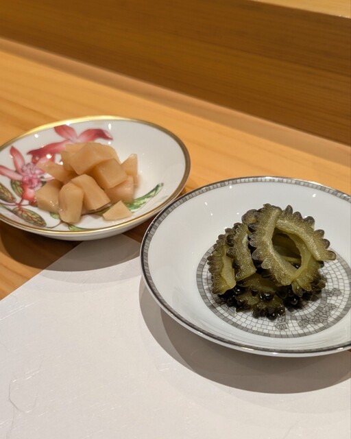 旬食材を丁寧に下処理しております。お酢は白菊や山吹など箕面の三年熟成のものを使用。お米は粒が大きい滋賀県の「にほんばれ」を洗う段階からこだわっております。ネタとシャリのバランスを考えながら握る寿司は、お客様のペースに併せて提供するスピードやボリュームを考慮。新鮮なイカや熟成させたマグロなど、3か月に一度お品書きを変えております。店主の思いが詰まった一貫を、醤油のみならずポン酢や梅醤油などでどうぞ◎