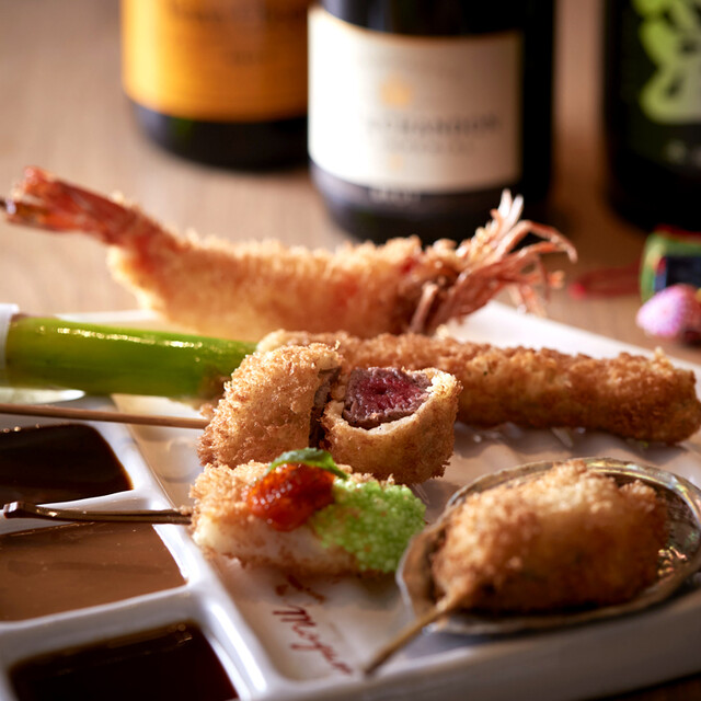 和牛の食べ比べ!A5ランク山形牛フィレ肉串カツ付き最上の全16品コース【ウェルカムドリンク付き】※ 3日前までのご予約をお願いします。