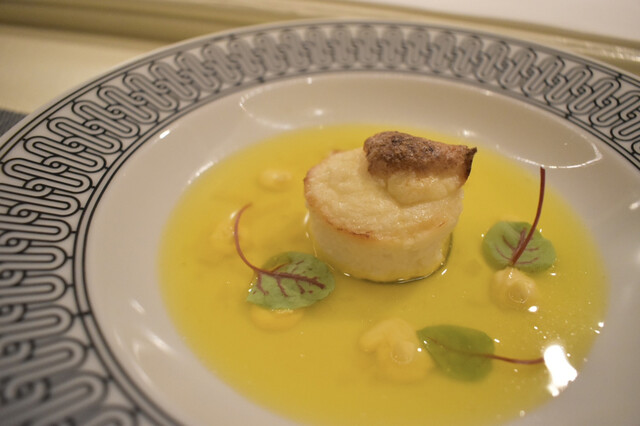 シェフの長年の経験により培われた秒単位での火入れにより、素材の美味しさを最大限に引き出し、最適なタイミングでご提供いたします。2〜3日かけて創る出汁をはじめ、ソース、スープ、パンなど全てに手間と時間をかけ仕込んでおります。