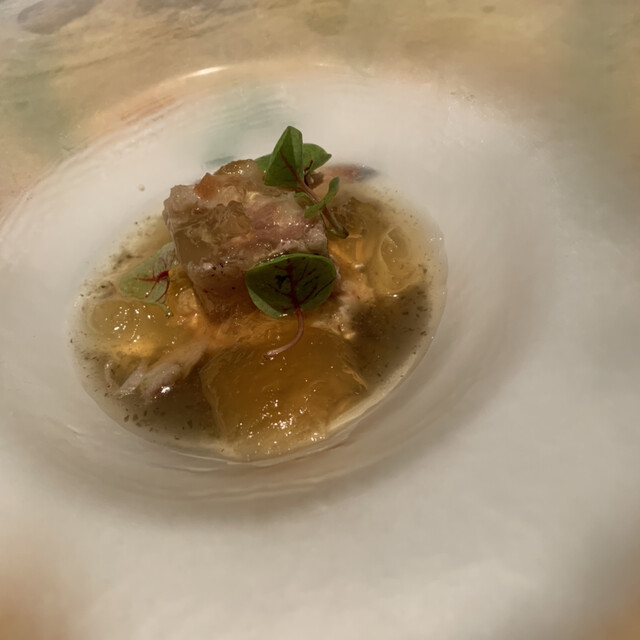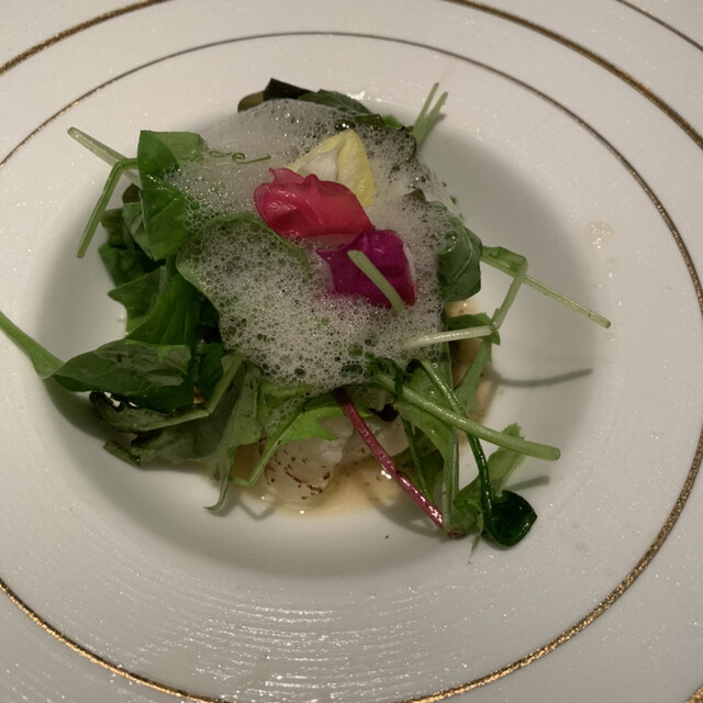シェフの長年の経験により培われた秒単位での火入れにより、素材の美味しさを最大限に引き出し、最適なタイミングでご提供いたします。2〜3日かけて創る出汁をはじめ、ソース、スープ、パンなど全てに手間と時間をかけ仕込んでおります。