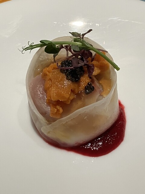 シェフの長年の経験により培われた秒単位での火入れにより、素材の美味しさを最大限に引き出し、最適なタイミングでご提供いたします。2〜3日かけて創る出汁をはじめ、ソース、スープ、パンなど全てに手間と時間をかけ仕込んでおります。