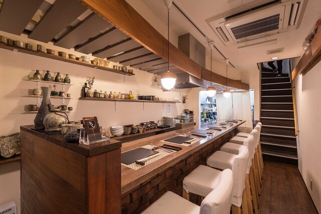 1F カウンター席 目の前で店主と話しながら、揚げたての天ぷらを味わえます。