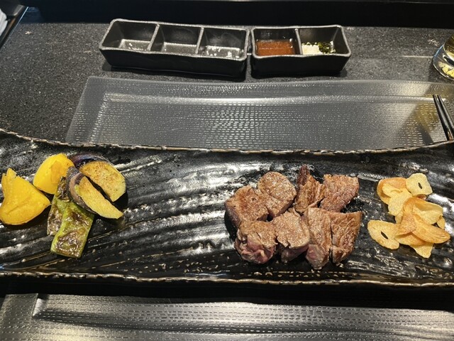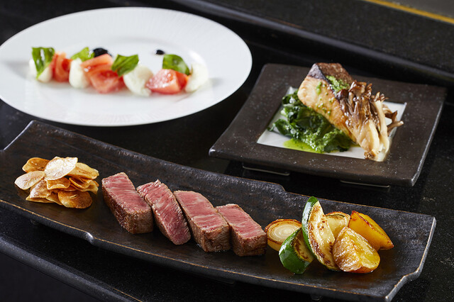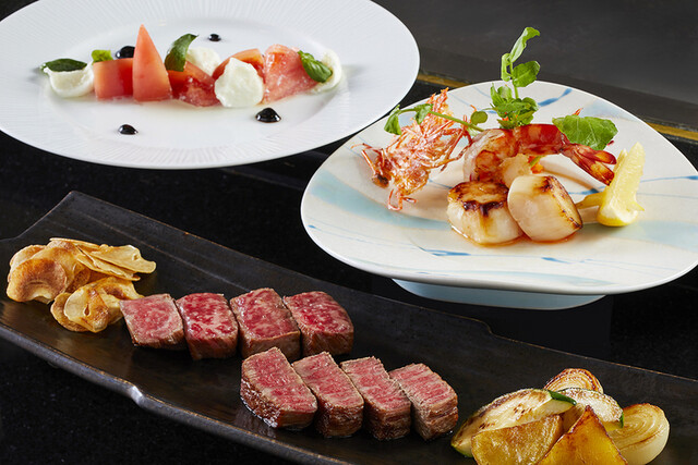 10月~【シェフズコース】 極上黒毛和牛テンダーロインとサーロイン各50g、蝦夷鮑の鉄板焼6品