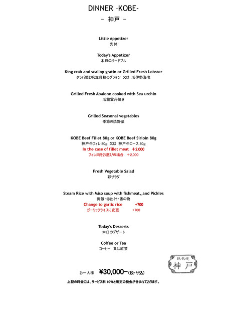 カード可(VISA、Master、JCB、AMEX、Diners)