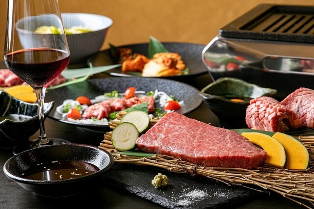 豪華 杏樹亭コース 和牛ハラミ刺し 和牛タンを楽しめます。16品