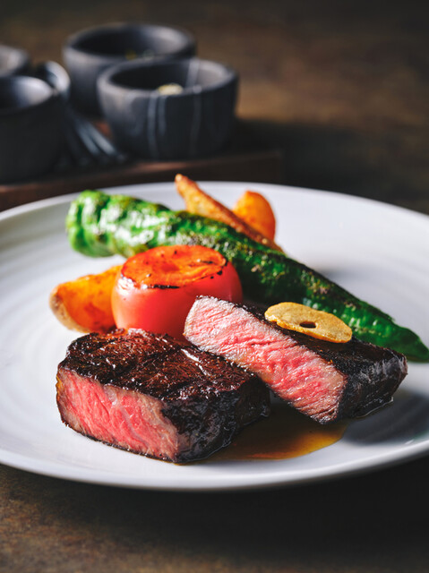 メイン食材は、濃厚な旨味を最大限に引き出した“熟成肉”。「熟成サーロイン」「国産牛サーロイン」「特選黒毛和牛フィレ」などの中から、お好みのステーキをお楽しみいただけます。パン・食後のドリンク・デザートが付いた「コース」では、メイン料理のチョイスが可能。ステーキはもちろん、季節ごとに変わるコースメニューも絶品です。シェフこだわりの調理法で作り上げた自慢の逸品を、心ゆくまでご堪能あれ。