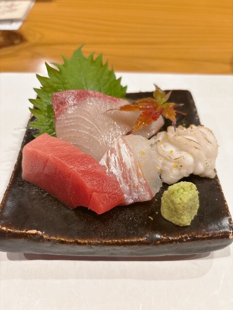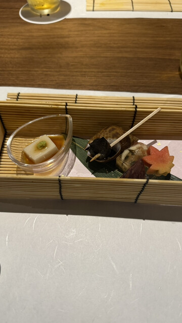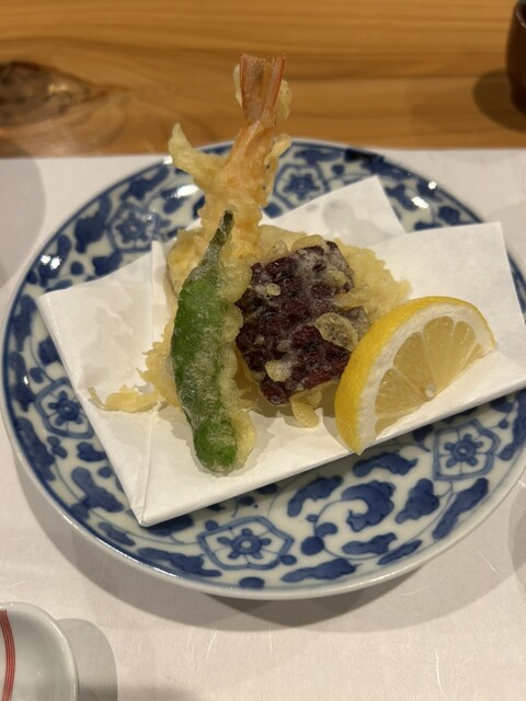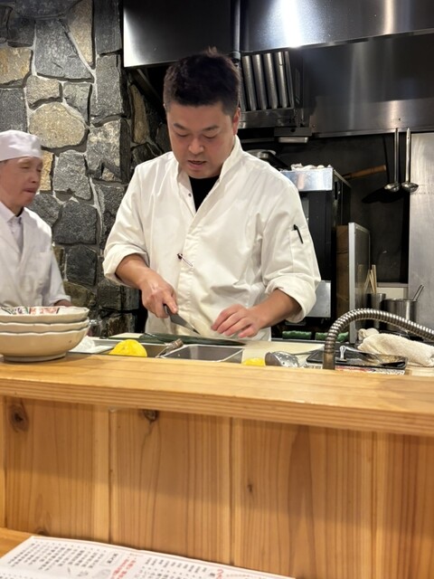煉瓦造りの建物、クイーンズコートの奥に位置する当店。木製の引き戸を開けて店内に入れば、洗練された和モダン空間が広がります。木目が優しいカウンターはオープンキッチンで、目の前で臨場感たっぷりの調理風景を楽しめる特等席!テーブル席は2名様用と4名様用のお席をご用意。高めの仕切りで区切っていますので、ゆったりとお食事をお楽しみいただけます。デートや接待など、様々なシーンにご利用ください。