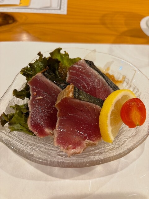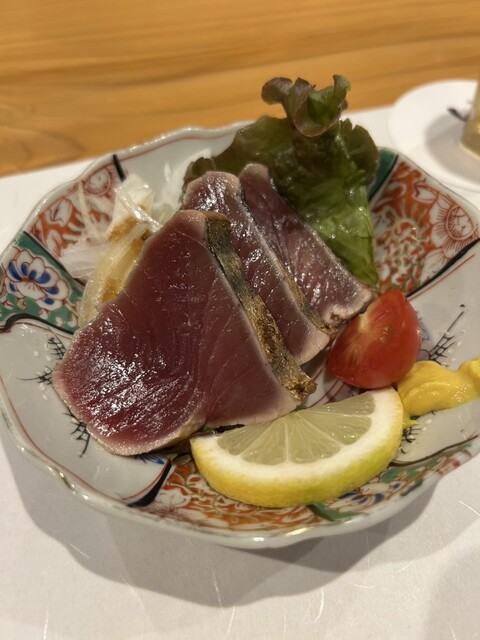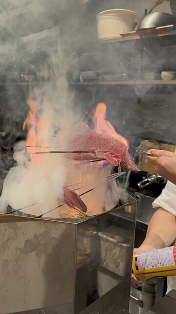 当店名物・藁焼きは必食。食材の旨みをギュッと閉じ込めた自慢の逸品です。藁焼きならではのこうばしい香りや風味を感じ、炭火焼きとは違った趣を味わっていただけます。イチオシは『けんけん鰹の藁焼き』。新鮮な食材が持つ食感や旨味が引き立ち、一度食べれば虜になること間違いなし。その他、朝引き地鶏や鰆など、様々な食材をご用意しております。豪快に上がる炎で焼き上がる調理風景も見所です。