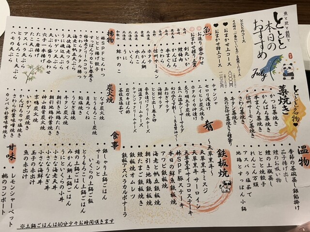 • 居酒屋、海鮮、鉄板焼き