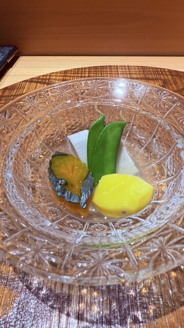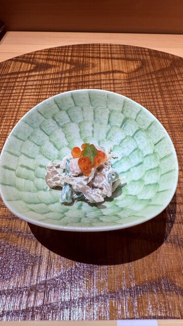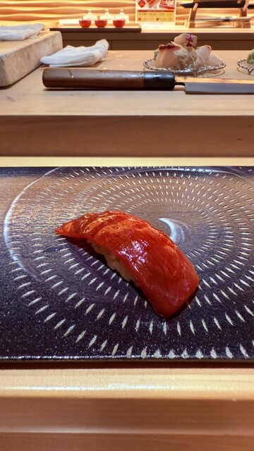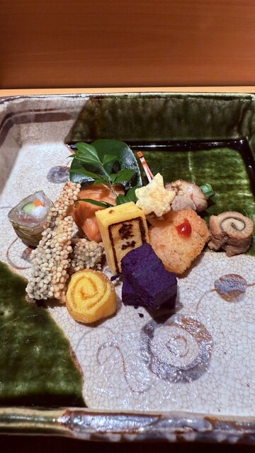 「おまかせコース」は、お造りと握のほか、先付け、焼き物、強肴、椀物、麺、甘味など四季折々の品で構成しております。しっかりとしたボリュームもありつつ、旬の素材をふんだんに取り入れた料理はどれも絶品。月に一度内容が変わるため、訪れるたび新たな“美味しい”と出会える愉しさも魅力です。伝統を重んじながら、現代の方々の趣向にあう味わいに仕上げた江戸前鮨を、心ゆくまでご堪能あれ。