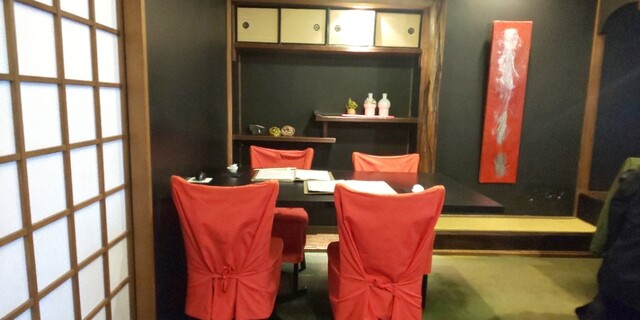 ・1階には赤と黒を基調としたテーブル席がございます。仕切りをして個室利用も可能です。 ・2階にはソファ個室(2~7名様)、13名様以上で貸切可能な大部屋がございます。