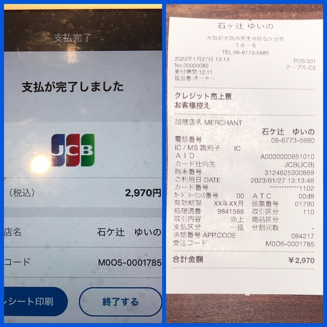 カード可(VISA、Master、JCB、AMEX、Diners)