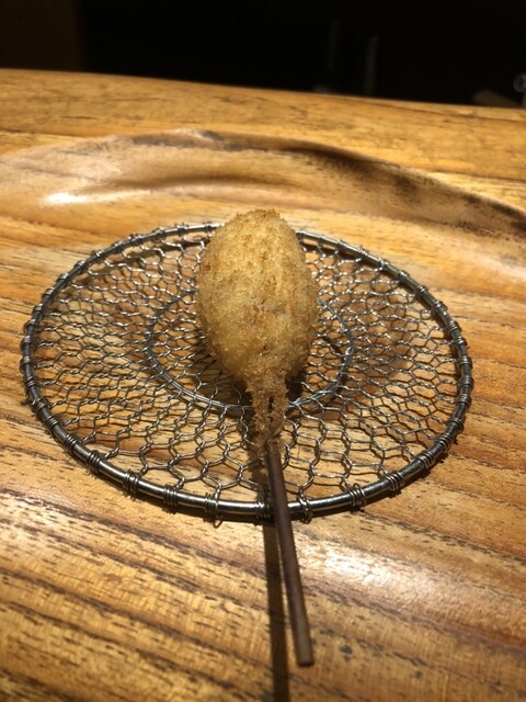 塩と胡椒だけで味を付けた“フォアグラ”の串揚げを心ゆくまでお愉しみください。ガチョウのフォアグラは、上質なものだけを厳選。「本物」の素材を使っているからこそ、シンプルでありながらも力強い逸品となるのです。高級食材であるフォアグラを串揚げとして気軽に愉しむ…。これまでの手軽で安い串揚げではなく、ワンランク上の串揚げへと変貌を遂げた自慢のひと品です。ご来店の際には、是非フォアグラをご堪能ください。
