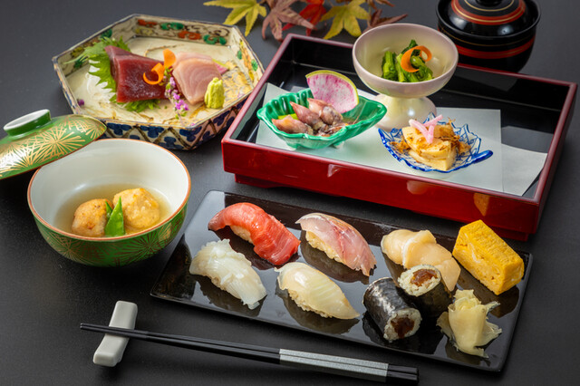 鮨割烹ディナーコース 【涼凪】すずなぎ お造り・季節の天ぷら・握り鮨5貫 など8品8品